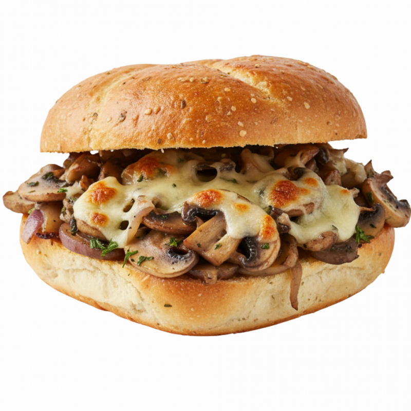 Kajzerka z pieczarkami i cebulką oraz serem chedar-dowolne sosy